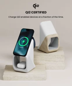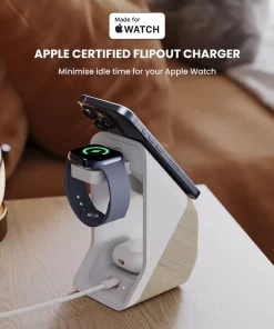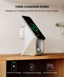 - Delivers up to 15W fast wireless charging for iPhones (12 and onwards), fast charging for Apple Watches, and AirPods.